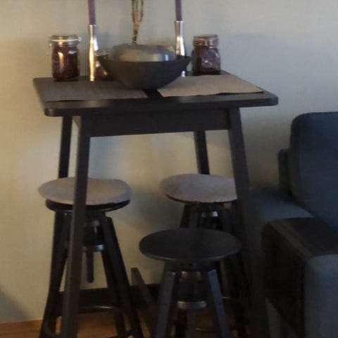 Høyt kjøkkenbord og stoler selges