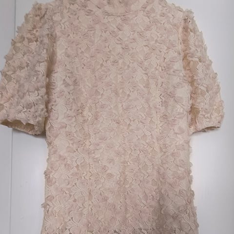 Stilig festtopp i halvblankt materiale med pålimte små studs i sølvfarge. Den har v-hals og lange ermer med liten puff på skulderen. Myk og glatt innside som føles behagelig mot huden. Smal passform med god stretch.