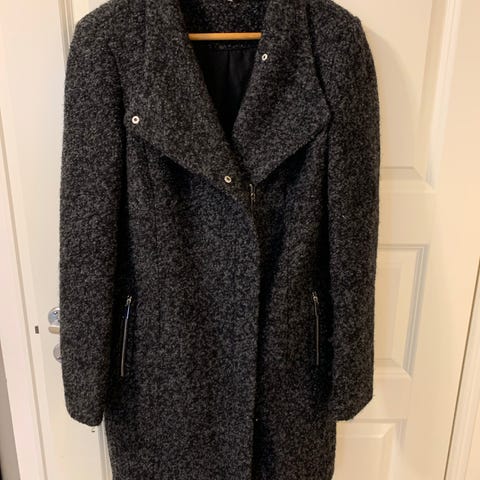 Stilig, enkel ullfrakk med fiskebensmønster fra et økologisk merke, Størrelse 36 (S).