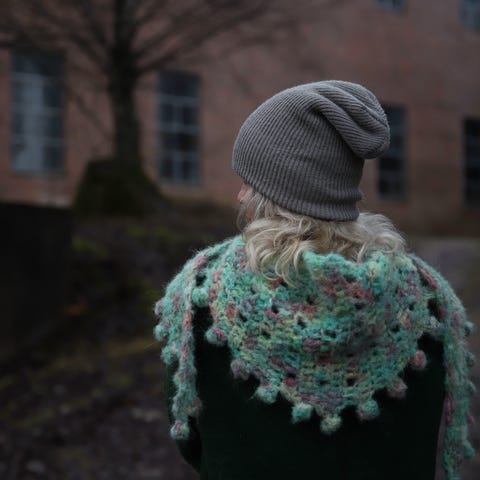 Et mykt og fluffy skjerf i naturfarger inspirert av skogbunnen om vinteren: hvitt fra snøen og frosten, lysegrønt fra mosen og varme brune toner fra gammelt høstløv. Perfekt for deg som liker å ta litt av skogens ro med deg – enten du skal ut på tur eller bare ut av døra.
