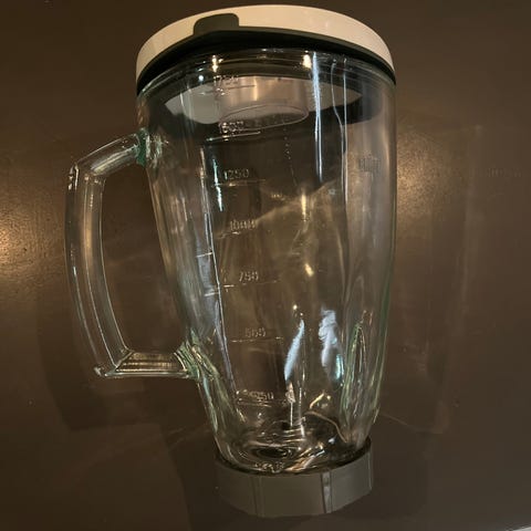 Glasskannen er hel og fin, og basen har litt kosmetiske merker, men ingenting som påvirker bruken.