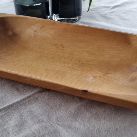 Overflatebehandlet med foodsafe lakk så de tåler en vask med vann, dog ikke oppvaskmaskin.