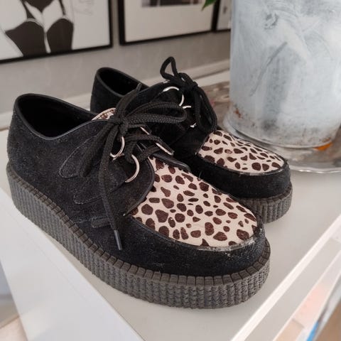 Disse er veldig fine og lite brukte "creeper" ankelstøvletter i ekte skinn. De ser nesten ut som nye!