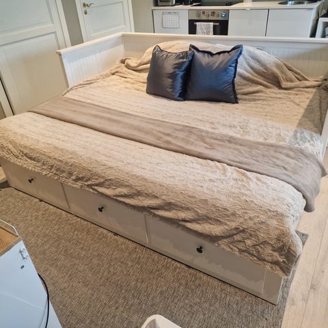 Brukt som gjesteseng, dvs lite brukt, og kunn brukt av ikke-røykere.