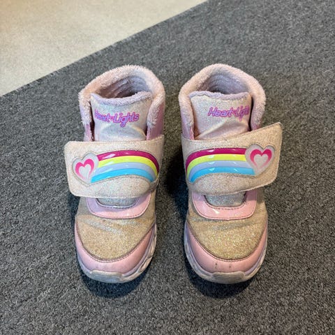 Okaki innesko for jente i størrelse 32. Skoene er rosa med hvit såle og har borrelås for enkel på- og avkledning.