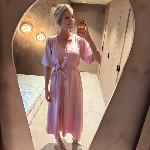 Brukt 1 gang før den ble for liten til meg. 100% viskose. Som ny. På lappen str L men vil si den er en M.
