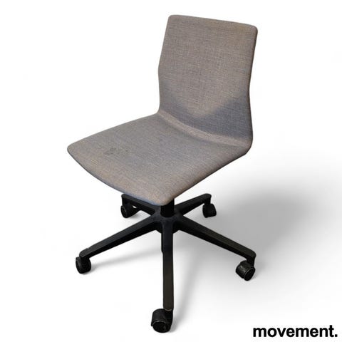 Det brede setet og den avrundede ryggformen gir god støtte, mens hjulene gjør stolen enkel å flytte mellom ulike rom og oppsett. Armlenene bidrar til ekstra komfort, og den robuste konstruksjonen gjør stolen velegnet til hyppig bruk.