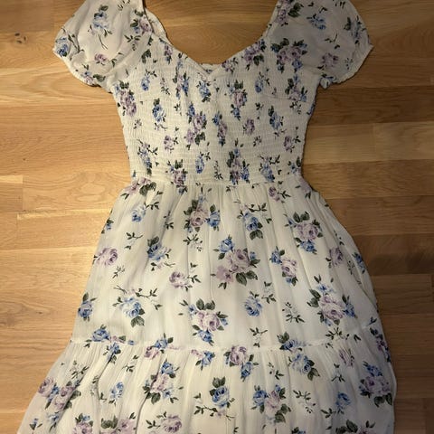 Hollister Sommerkjole i størrelse S, flerfarget mønster med blomster, laget av bomull. Kjolen har lange ermer med smock-detaljer og er designet for kvinner.