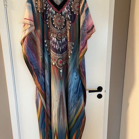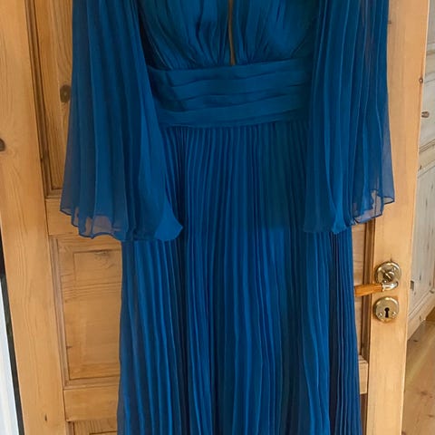 Kjole, merke Godske, i blå chiffon, størrelse 46 (tils varer 3xl). Kjolen har lagvis design med et mykt og lett materiale som gir god bevegelsesfrihet. 3/4 arm. Passer til ulike anledninger.