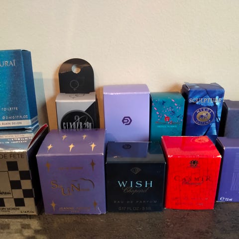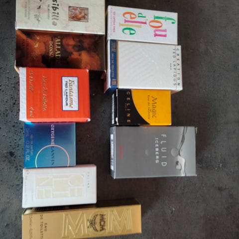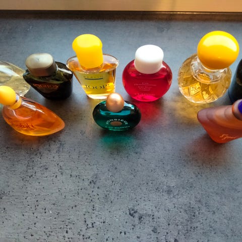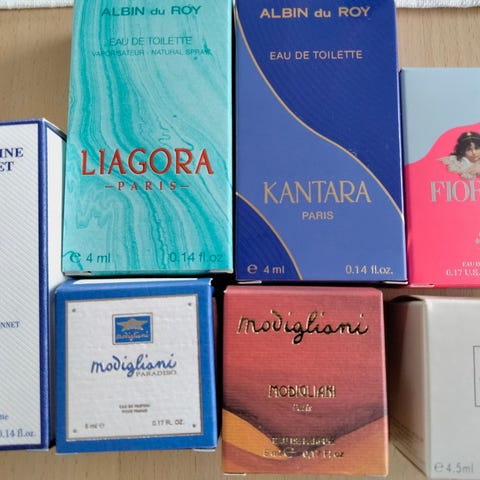 15 stk miniatyrflasker med parfyme selges. Det er kjente parfymemerker.