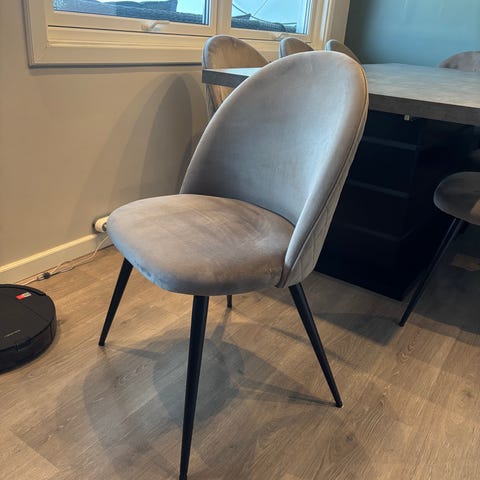 Grei stol med noen flekker