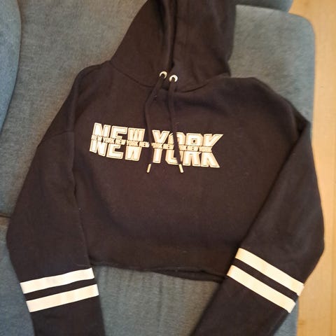 Crop Top hettegenser fra bikbok er gammel og brukt, men håper at den kan få et nytt liv med en som vil bruke den