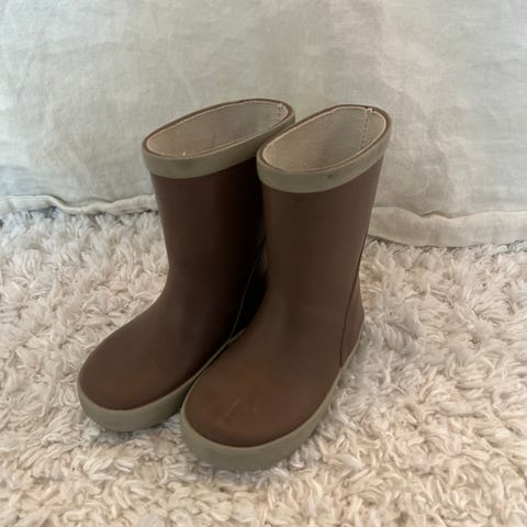 Sjeldent brukt Kuling barnestøvler størrelse 24, i beige farge. Støvlene er ikke foret, har en solid såle med godt grep og er laget for å beskytte føttene under våte forhold. Nypris 650,-