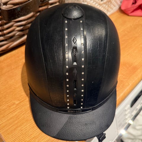Ridehjelm. Er en del år gammel, bruksmerker-se bilder.