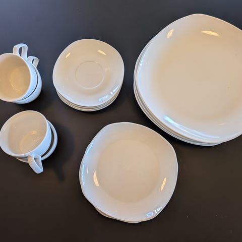 Nydelig kaffesett fra Villeroy & Boch. Settet inkluderer 8 kopper med underfat og asjett. Tidløst og vakkert design.