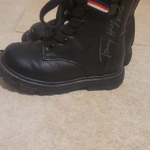 Tommy Hilfiger jente sko i størrelse 29. Skoene er beige med en dekorativ sløyfe foran. Materialet har en myk tekstur og sålen er tilpasset barnets fotstørrelse.