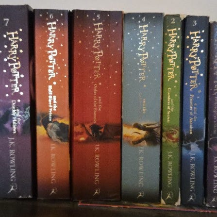 Bøker fra populære serier og forfattere, blant annet Harry Potter, Kattekrigerne, Gutta i trehuset, Edward Rubikon, Amuletten og andre godbiter. Alle på norsk og de fleste kjøpt på Outland. Passer for store barn og unge lesere. Kjøp en bok for 50, eller kom med bud på flere (men ingen skambud, for pengene går til sønns sparing til slalomski). Kan hentes på Ekeberg eller i Botanisk hage, eller sendes.