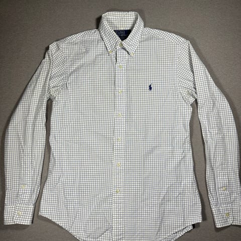Klassisk RL button-down, smårutet marine/hvit. Str (M) – kr 400