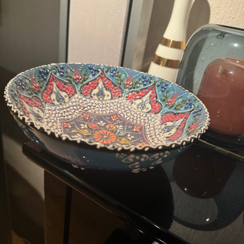 En helt unik skål i helt dus grønnfarge og hvit farge