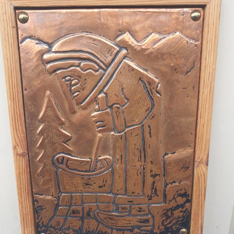 • Det er et opphøyd kobberarbeid , hvor området rundt mannen er «banket»