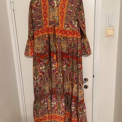 Maxikjole fra Boohoo i størrelse XS. Kjolen har kun blitt prøvd på. Tettsittende passform med stretch. Splitt bak. Passer XS-S.