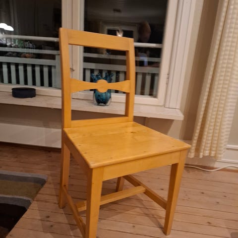 Bord med klaff og to stoler i furu