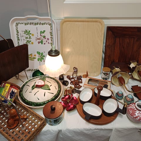 To retro teak- figurer med magnet på magen.