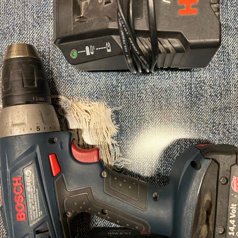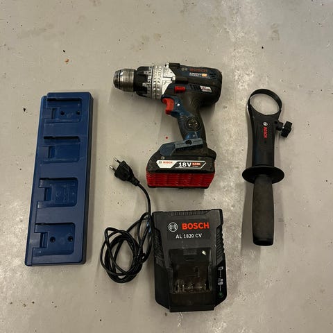 Batteridrill fra blå Bosch selges fordi jeg har kjøpt en nyere en.