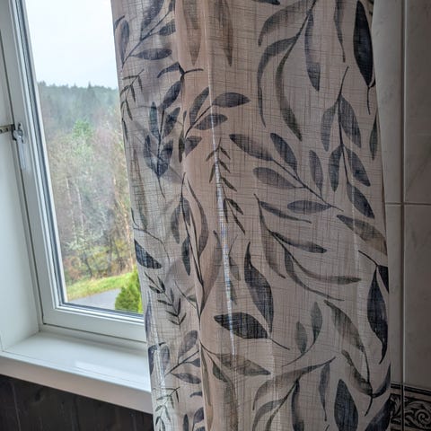 4 mønstrete gardiner ecru og grå