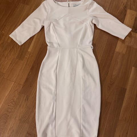 Hybrid hverdagskjole i hvit farge, størrelse 10/ 38. Kjolen har en enkel og tidløs design med glidelåsdetalj på siden. Veldig elegant.