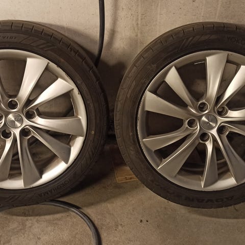 1 stk Landsail dekk på felg, sittet på Tesla S. Godt med mønster igjen. Produsert Januar 2021. Skadet 1 hjul, kjøpte 2 nye komplette, derfor 1 igjen. Felgen er vel ikke den peneste, men dekket er bra.