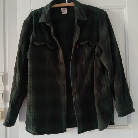 Levi's T-skjorte i størrelse L for herre, laget av bomull. T-skjorten er kakigrønn og har trykk på forsiden.