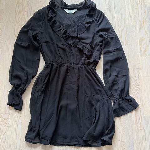 Lindex Kjersti kjole laget av fløyel i svart farge. Størrelse 164, designet for jenter. Kjolen har skulderstropper og en løs passform, egnet for barn.