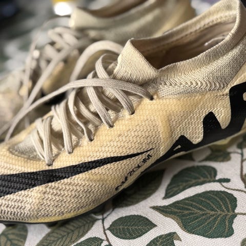 Fotballsko som desverre blei for liten etter kort tids bruk.