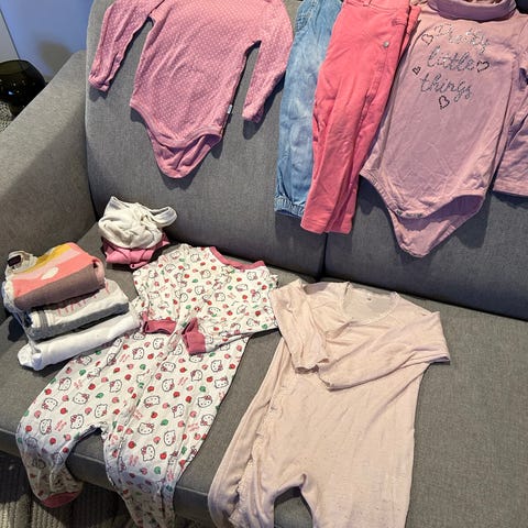 Pakken inneholder: 3 stk. korte pysjamas, 9 stk. body med korte ermer og 3 stk. badedrakter