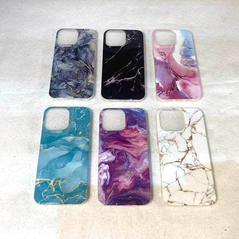 IDEAL OF SWEDEN Telefondeksel med rosa marmor mønster. Dekselet er laget for å beskytte telefonen og har utskjæringer for kamera og knapper. Materialet er plast med en myk innside for ekstra beskyttelse.