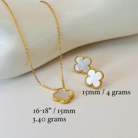 Elegant sølvbelagt sett med kløverformet anheng og matchende øredobber.