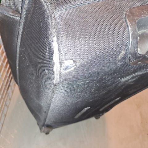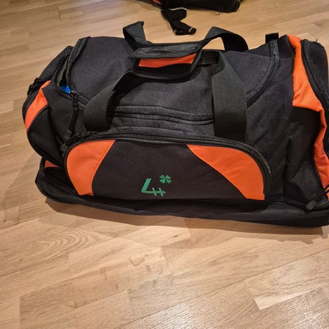 Bag med plass til mye, to hjul, håndtak for trilling, bærereimer. Lommer. Den er for stor for mine behov nå.