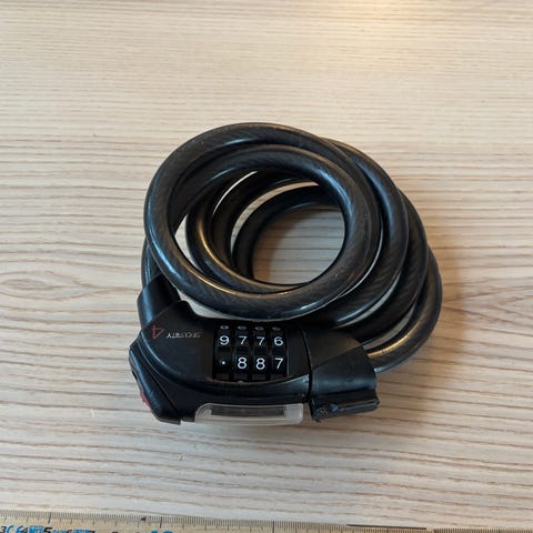 Kraftig lås til sykkel med 2 nøkler. Har litt rust på den men kan lett fjernes