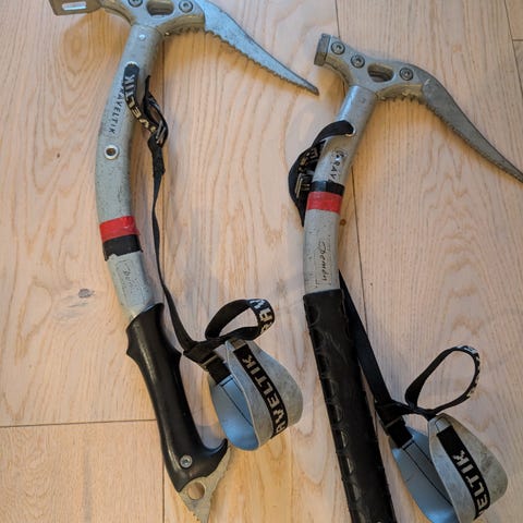 Godt brukt, men lang gjenstående levetid. Sålene er lite slitt. Spor foran og bak for step-in-stegjern. Har blitt benyttet til isklatring. Størrelse 48.