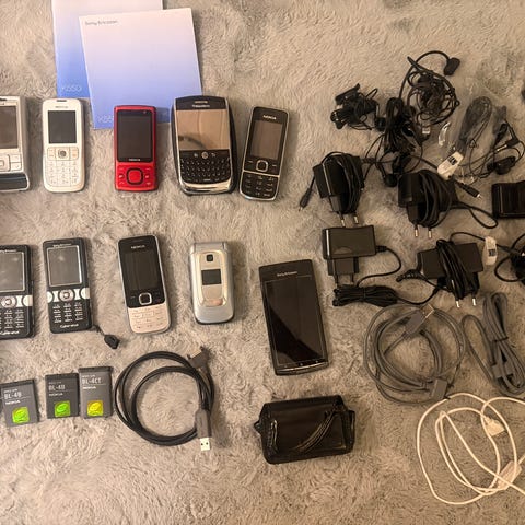 5 gamle Nokia telefoner med 4 ladere, fungerte når de ble lagt i skuffen men er lenge siden så ingen garanti.