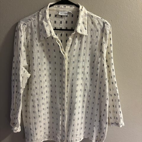 Ane Mone bluse i bomull, hvit farge, størrelse 42 for kvinner. Blusen har hullmønster og knappelukking foran, med en lett og luftig design.