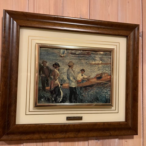 Pierre Auguste Renoir maleri The Seashore fra 1883. Maleriet er en del av en kunstsamling og viser en kvinne sittende i en stol ved sjøen. Maleriet er innrammet med en dekorativ ramme. Dokumentasjon fra Gallery d'Art følger med.