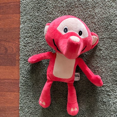 Fantorangen kosedyr laget av myk stoff i rød farge. Passer for barn og kan brukes som lek eller kosetøy.