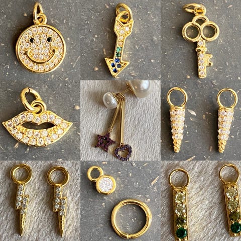 Selger en fin liten smykkepakke med forskjellige smykker i gull- og sølvfarget design. Alt er pent brukt og i god stand. Perfekt til gave, pynt eller som reservedeler hvis du mangler én øredobb i et par