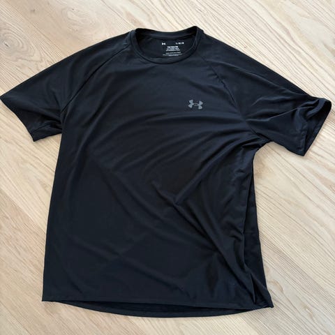 Under Armour løpeshorts for herre i størrelse L. Shortsen er grå og laget med pustende materiale som passer for løping. Den har elastisk midje med snøring for justerbar passform og detaljer i sort.