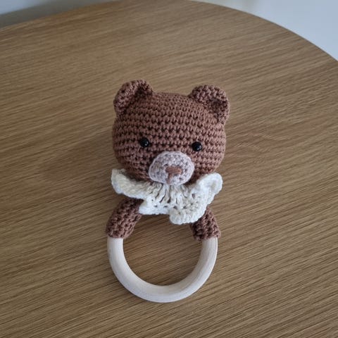 Selger denne søte bamsen jeg har heklet selv, har brukt ca 1 time på den. Se siste bilde for de andre fargene jeg kan lage, jeg tar bestillinger!❤️