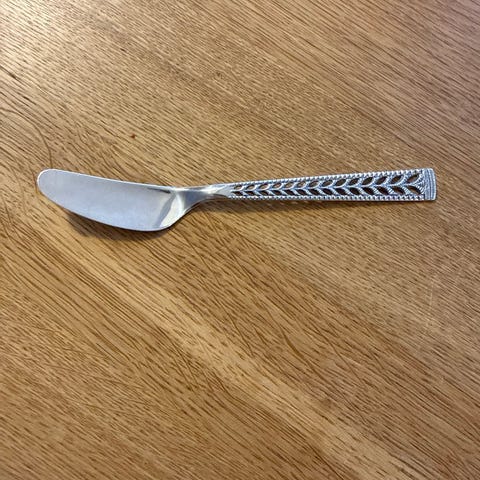 Barnesølvtøy, kniv selges. 830s. Et merke på skaftet, se bilde. Kan hentes/overleveres i Oslo, Bergen, Bodø, Trondheim,Tønsberg og Hemsedal. Samt strekningen Oslo-Hemsedal og Oslo-Tønsberg. Kan også sendes.