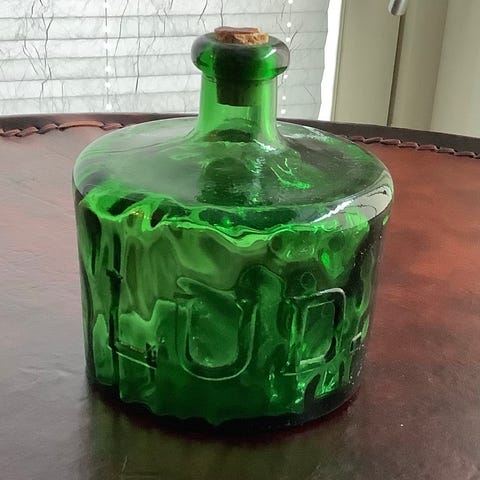 LUT glass flaske Moss Glassverk M2 grønt glass kjemikalieflaske norsk industri design oliven