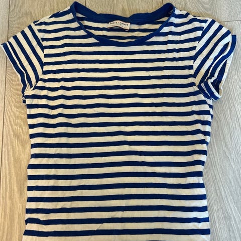 Finstriket T-skjorte i størrelse S fra Lindex. Rød farge.